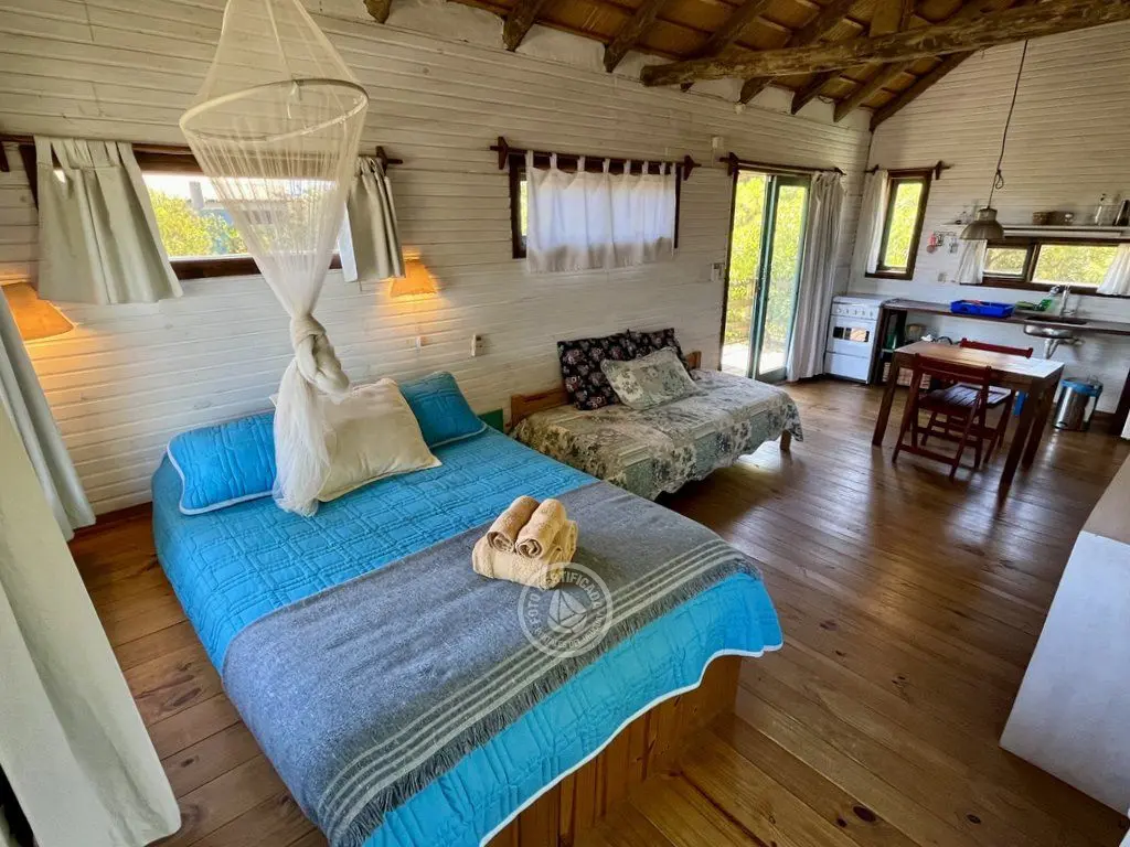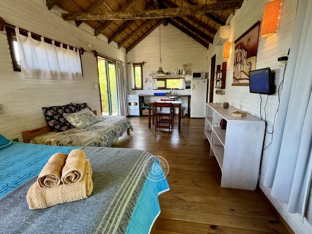 Hermosas cabañas de madera de un sólo ambiente, amplias y cómodas muy bien equipadas.