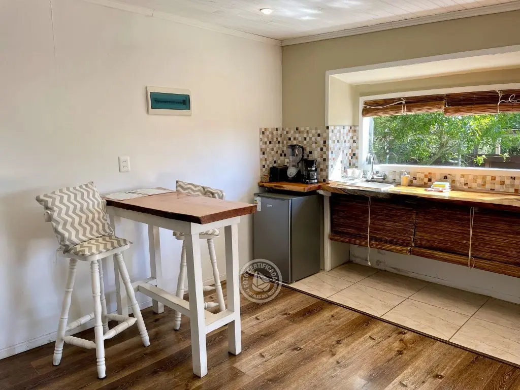 amplio monoambiente ideal para dos personas, bien equipado y con buen parrillero. se puede agregar una plaza para menor de 10 años